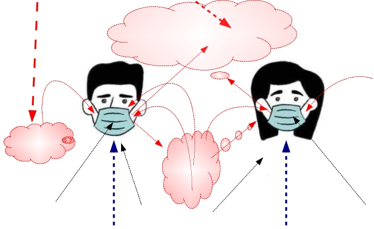 Les masques ne sont que peu efficaces contre « l’humidité pulmonaire » expectoré par le poumon, parce que les côtés du masque ne collent pas dans le pourtour du visage allant se mêler à la salive « comme un effet mélangeur » puis aérosolé finement dans l’air…