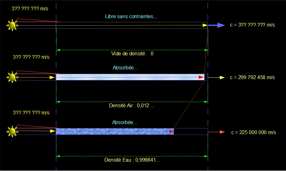 La vitesse "c" Moyenne d'ensemble de la lumière n'est pas une même vitesse du tout la composant... La somme des "v" n'est pas une seule vitesse pour une seule toute appelée : célérité "c" de la lumière ou nappe d'émission électromagnétique "lumière" qui ne serait pas composée...